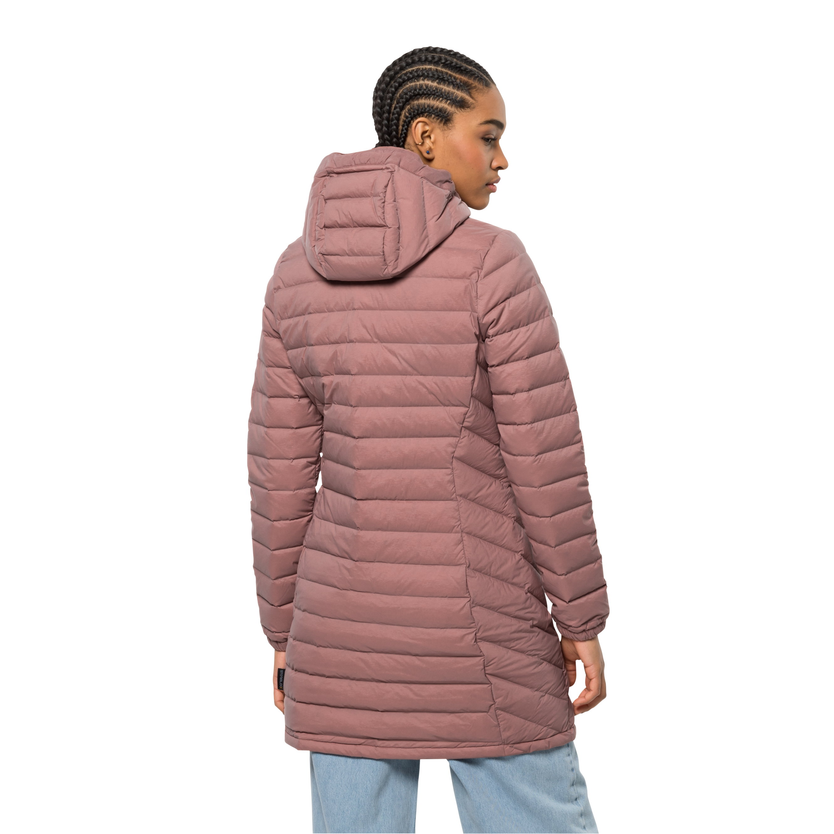 The GLOWING MOUNTAIN down jacket is light, stretchy and windproof, and will keep you warm in freezing cold and windy weather. The water repellent TEXASHIELD fabric is water repellent, so it will easily withstand those unexpected rain showers. The warm, RDS certified down fill has a high lofting capability yet the jacket still remains flexible enough to stretch as you move.