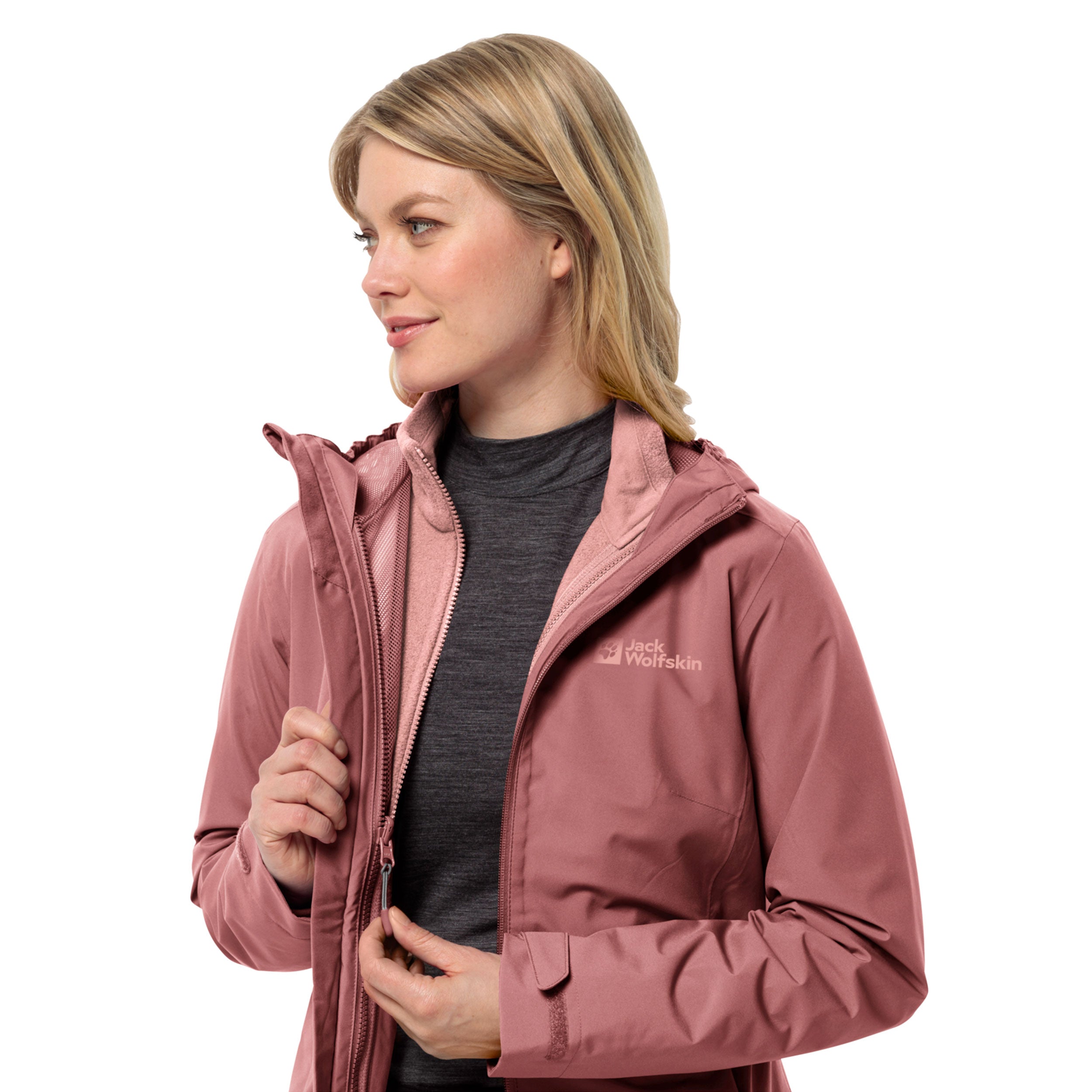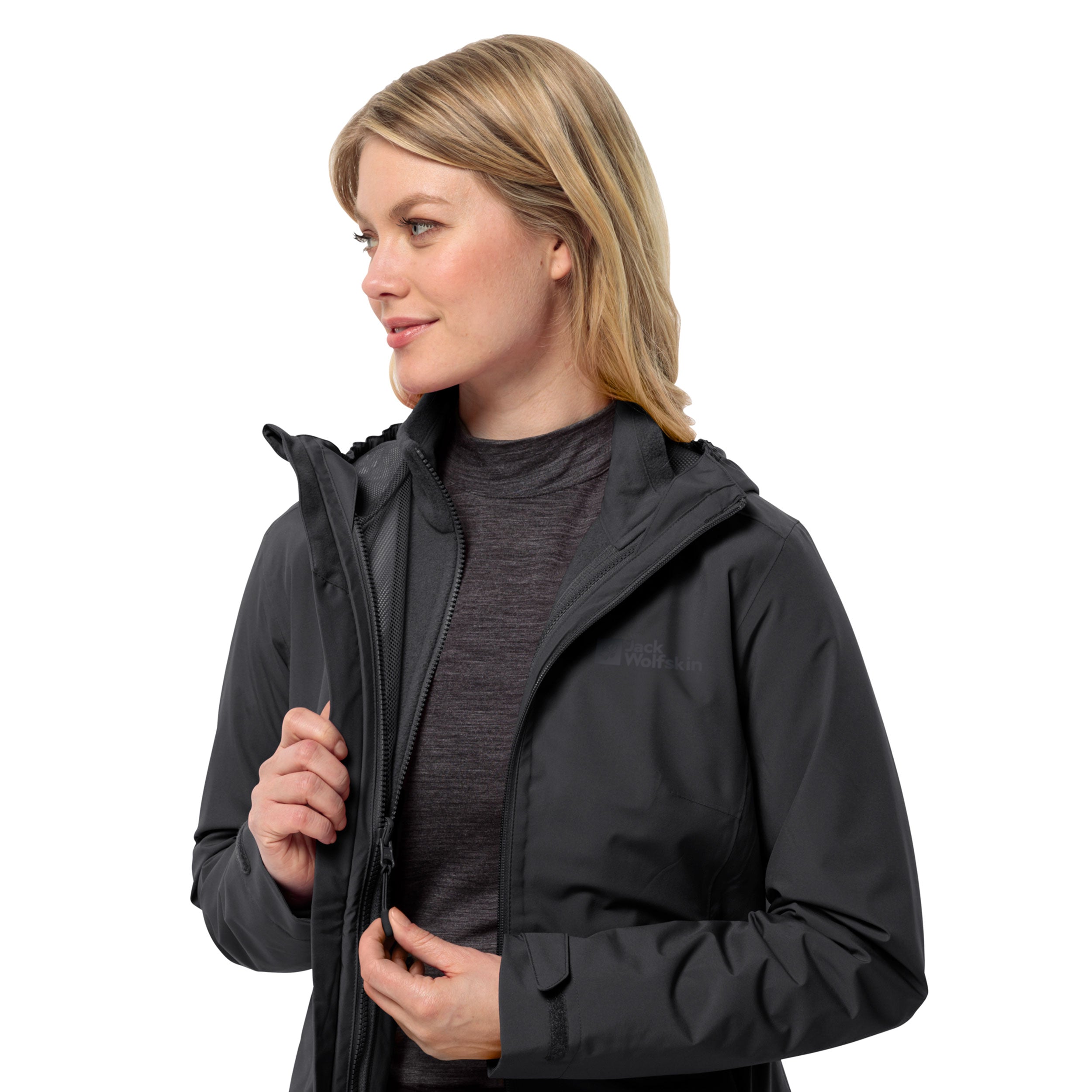 The easy integrated layering system stems from 1983 and was completely revamped in 2022, in order to be lighter, stronger and ever more weatherproof. Jack Wolfskin's 3-in-1 system combines two jackets with zip system: a weatherproof jacket to protect against the rain and an insulating layer that provides warmth and breathability. The jackets can be worn either together or separately, depending on your preference. The front zip on the inner jacket is attached to the second zip on the outer jacket; fastening loops on the sleeves and at the neck prevent it from slipping.