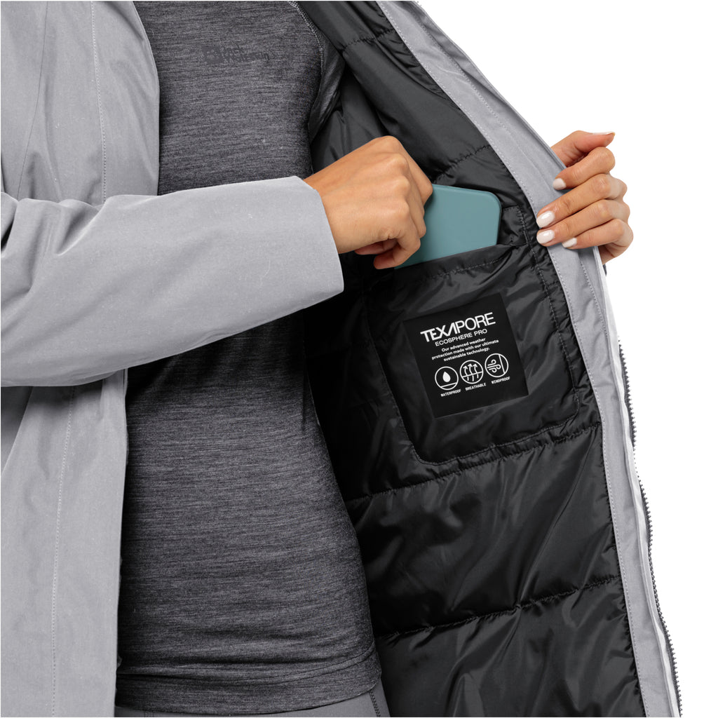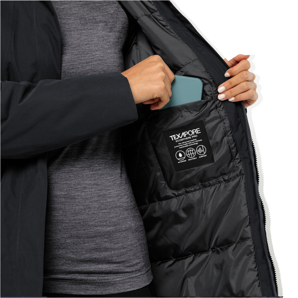 Lining: The inside of Jack Wolfskin's TEXAPORE ECOSPHERE jackets is also made from completely recycled material and is certified according to the Global Recycling Standard.