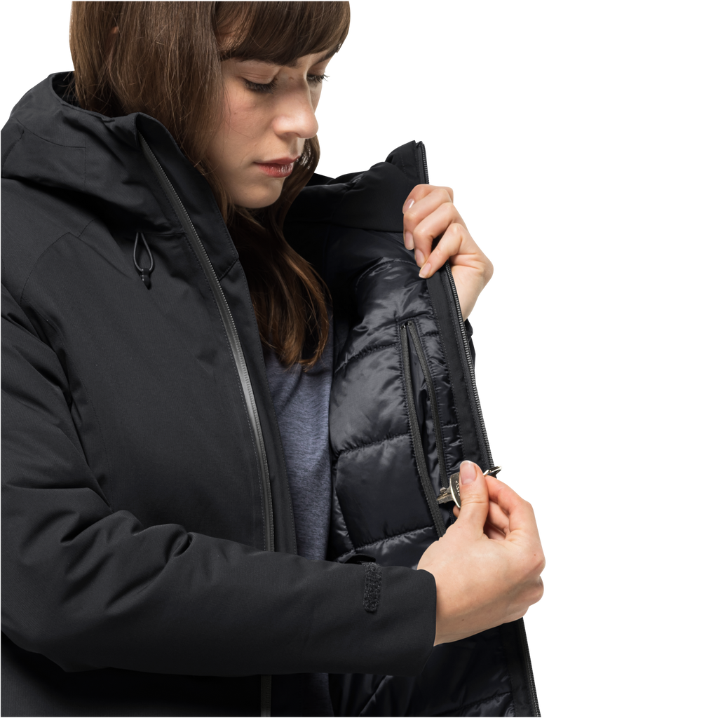 The WISPER jacket has a simple, minimalist design and delivers the reliable insulation you need on your winter hikes. It has a warm PRIMALOFT BLACK RISE synthetic fibre fill made from recycled polyester. The jacket is highly waterproof (water column rating: 20,000 mm) thanks to the special TEXAPORE PRO DOBBY shell fabric, which is also very breathable and windproof. The water resistant zip provides extra weather protection.