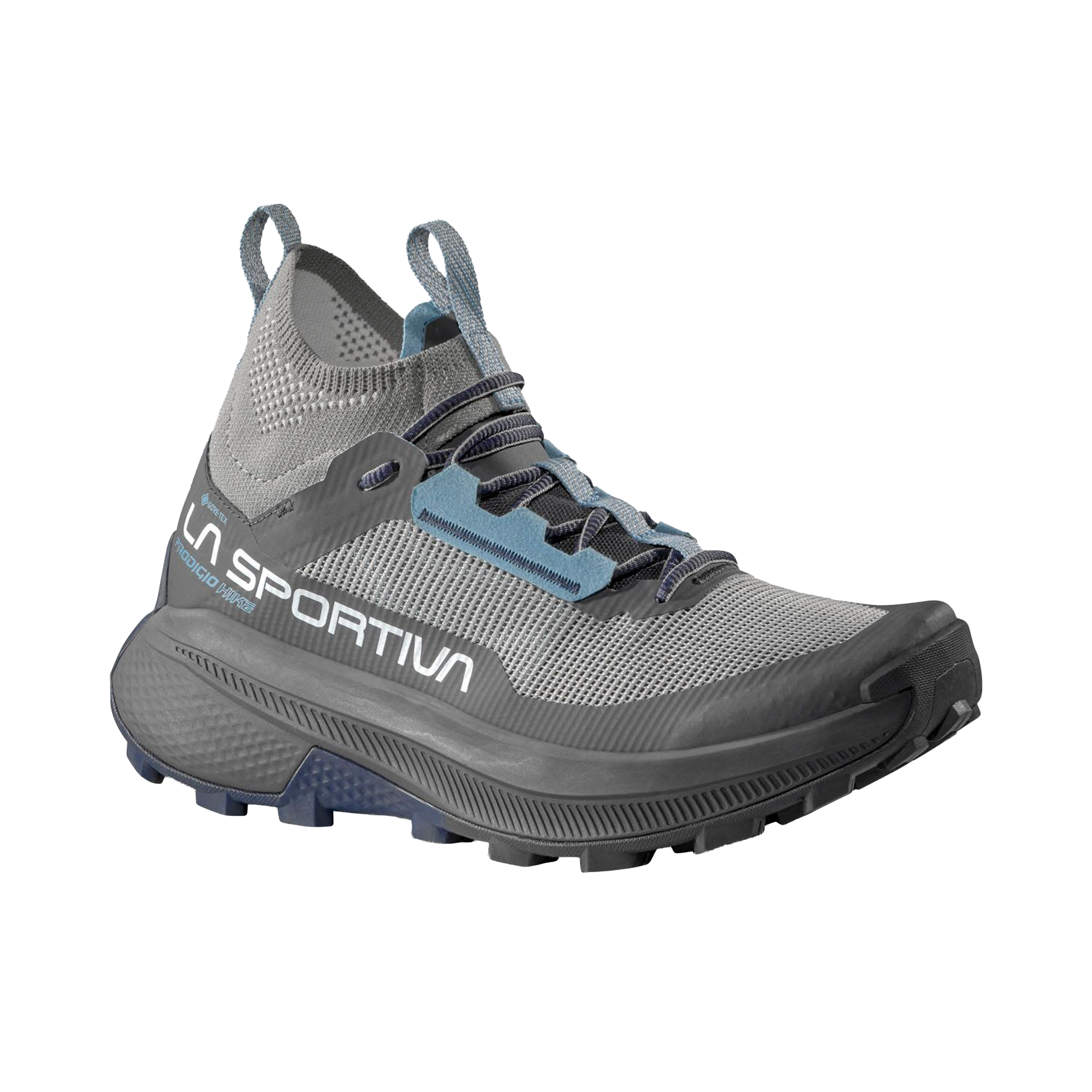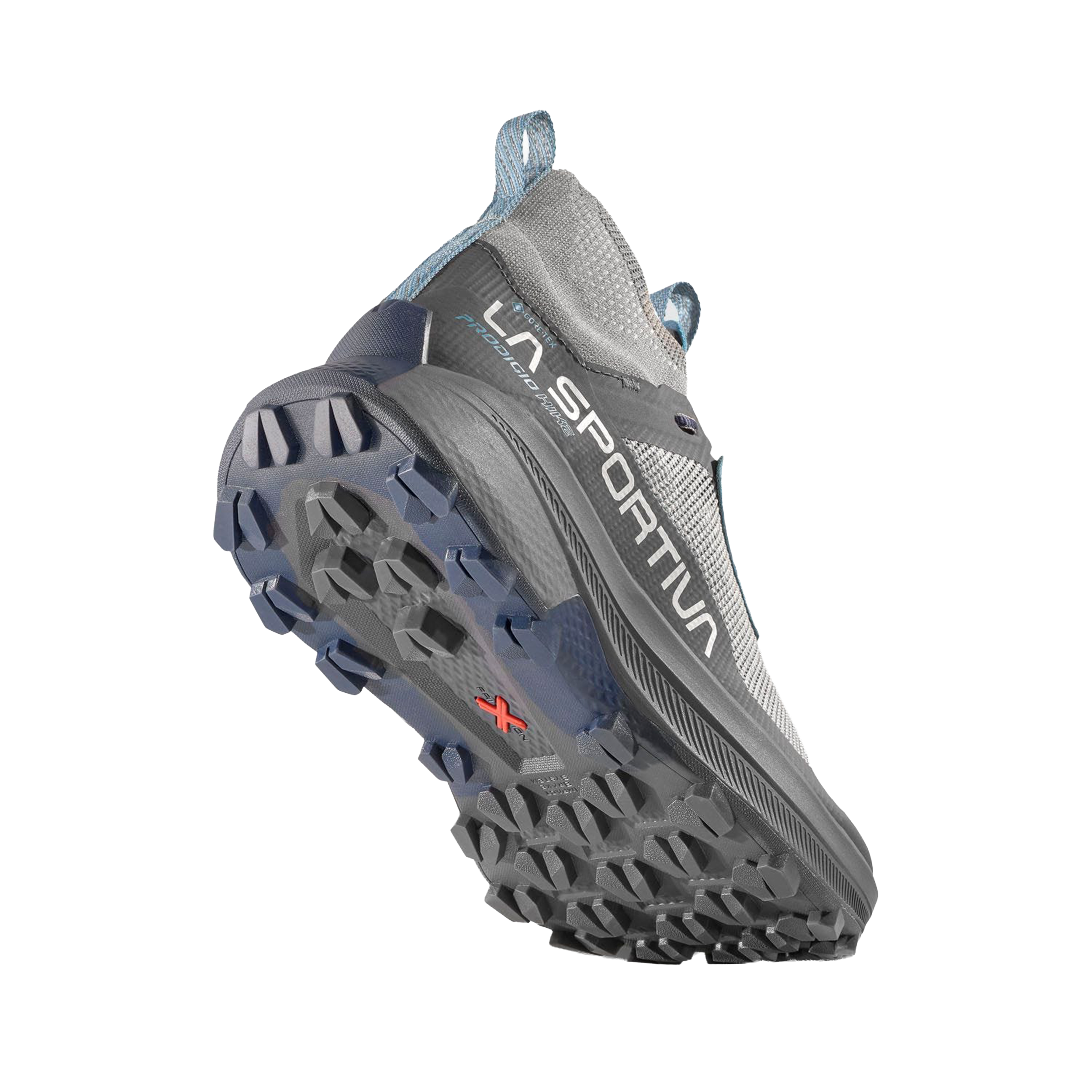 The revolutionary Prodigio Hike GTX is for fast hikers wanting to move efficiently across mountain terrain. Made with La Sportiva's High Tenacity Mesh upper, expect superb cushioning and breathability as you move quickly across traverses and demanding uphills. If it rains, the GORE-TEX ePE Extended Comfort membrane keeps your feet dry in all conditions so you can concentrate on the trail. The heel’s ergonomic shape and Rubber Tail Protection offer exceptional foothold and support, while the innovative Knit Collar wraps around for added ankle stability as you pick up the pace. For mud and rocky trails, the tried-and-tested FriXion Red outsole provides grip you can count on. We’ve also added Rubber Toe Protection to protect you from rocks and roots, so nothing slows you down. Reach mountain peaks faster and enjoy scenic descents in comfort with our Prodigio Hike GTX.