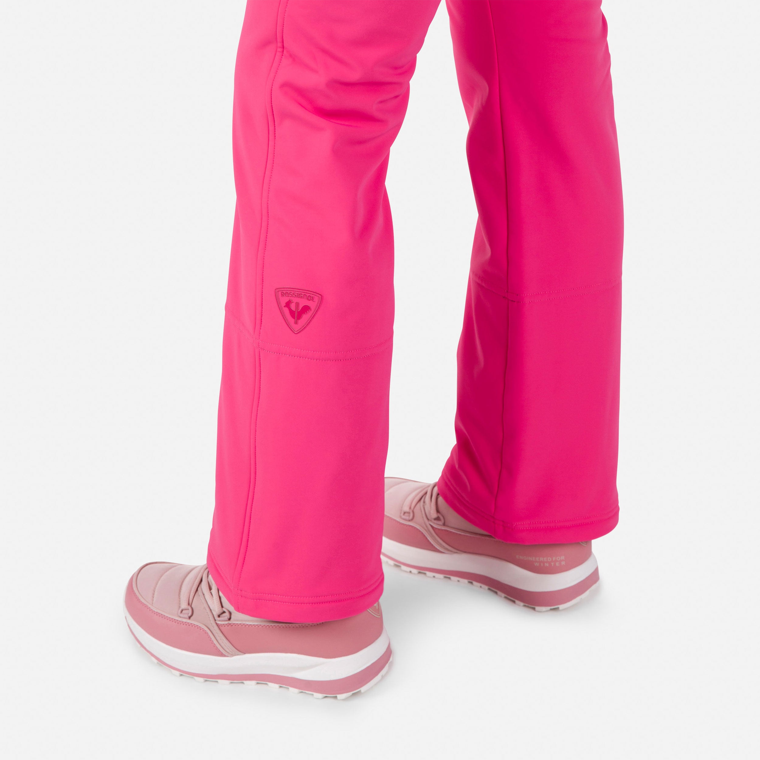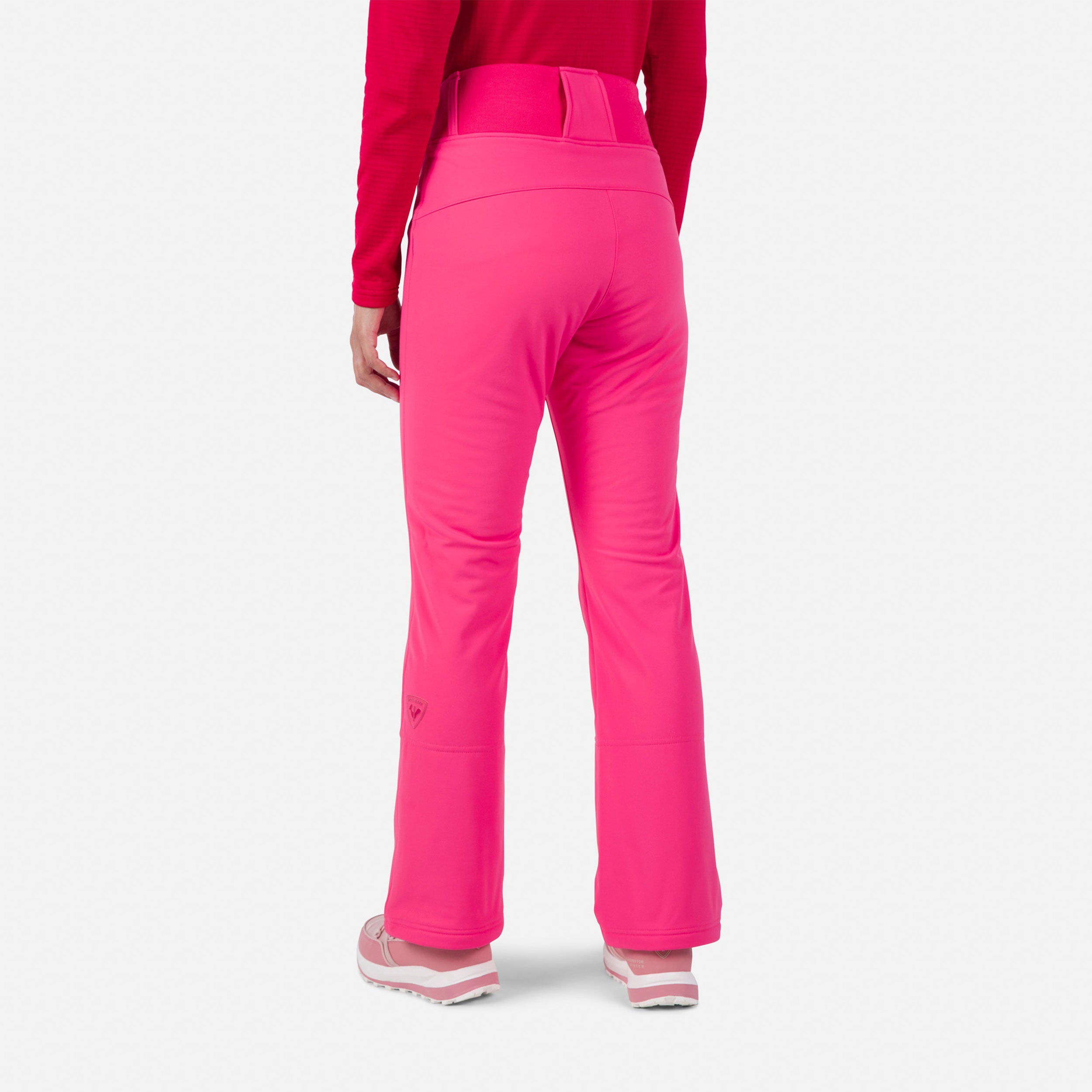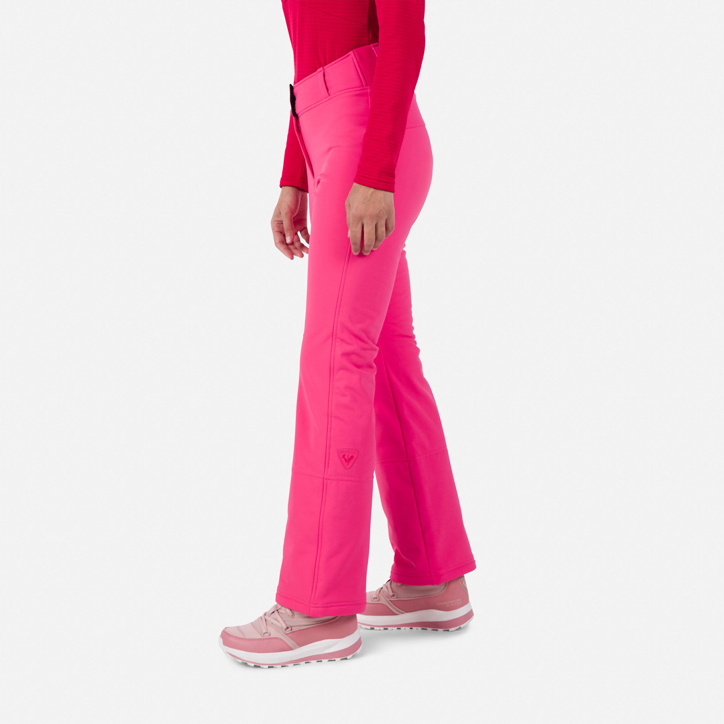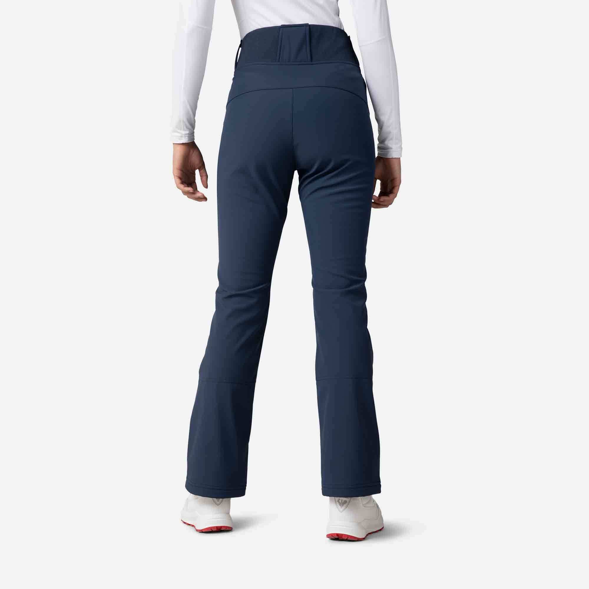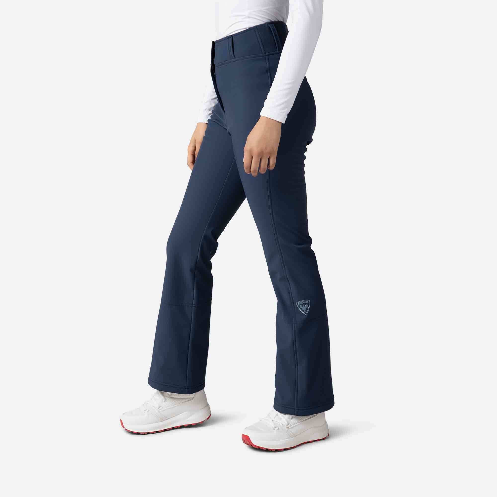 The women's Rossignol Softshell Ski Pants give you the freedom and comfort to move naturally in any terrain. The sleek fit hugs your body from hips to knees, then opens to fit over your boots creating a sleek, feminine silhouette. The wind-blocking weave is full of stretch, and a light brushed-fleece lining offers warmth when you're on the go.