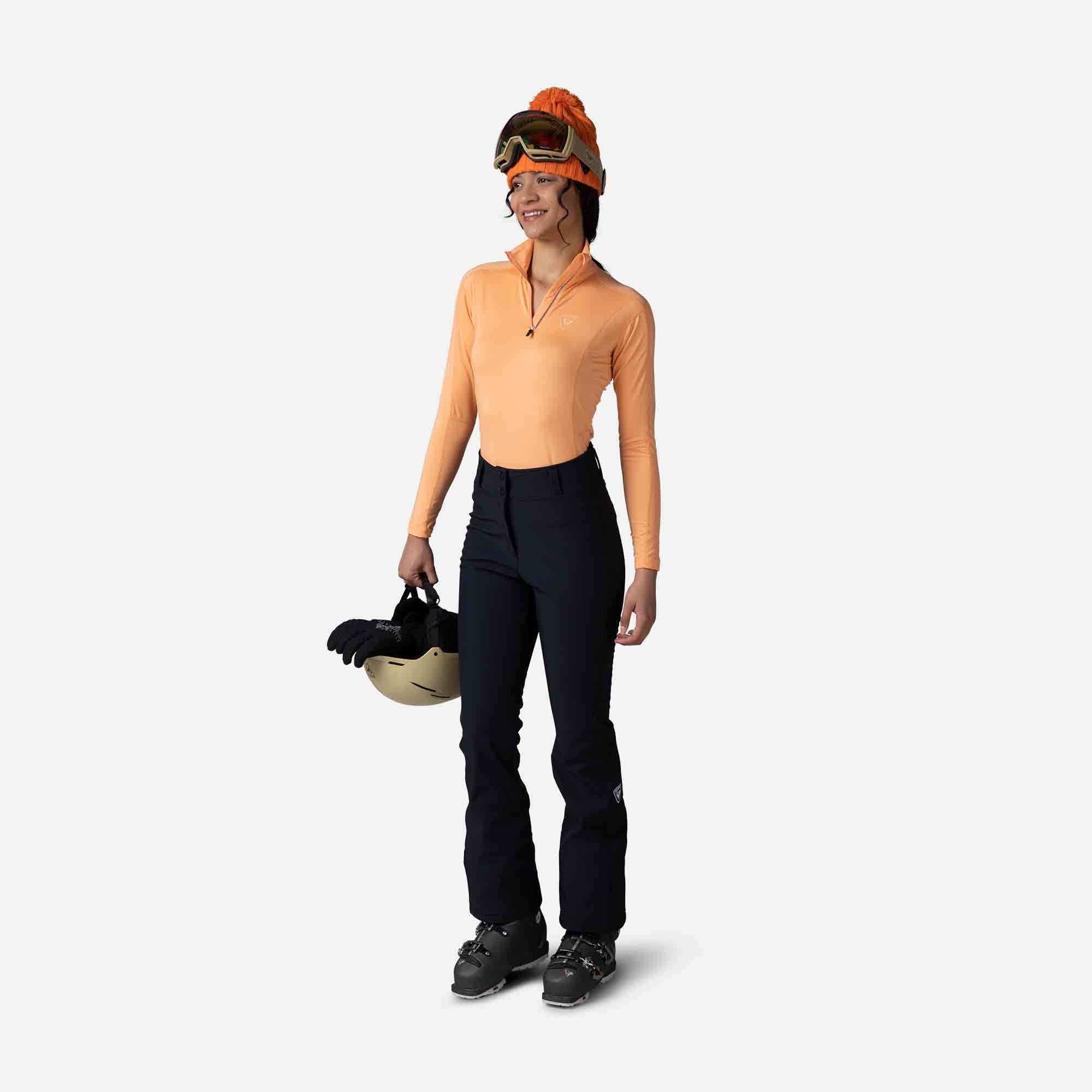 The women's Rossignol Soft Shell Ski Pants combine stylish design with exceptional performance, offering the freedom and comfort to move naturally across all terrains. Their sleek fit gracefully contours from hips to knees, flaring slightly to fit over boots for a flattering, feminine silhouette. Crafted from a wind-blocking stretch fabric with a brushed-fleece lining, these pants deliver lightweight warmth and effortless mobility, ensuring you stay both chic and comfortable during your skiing adventures.