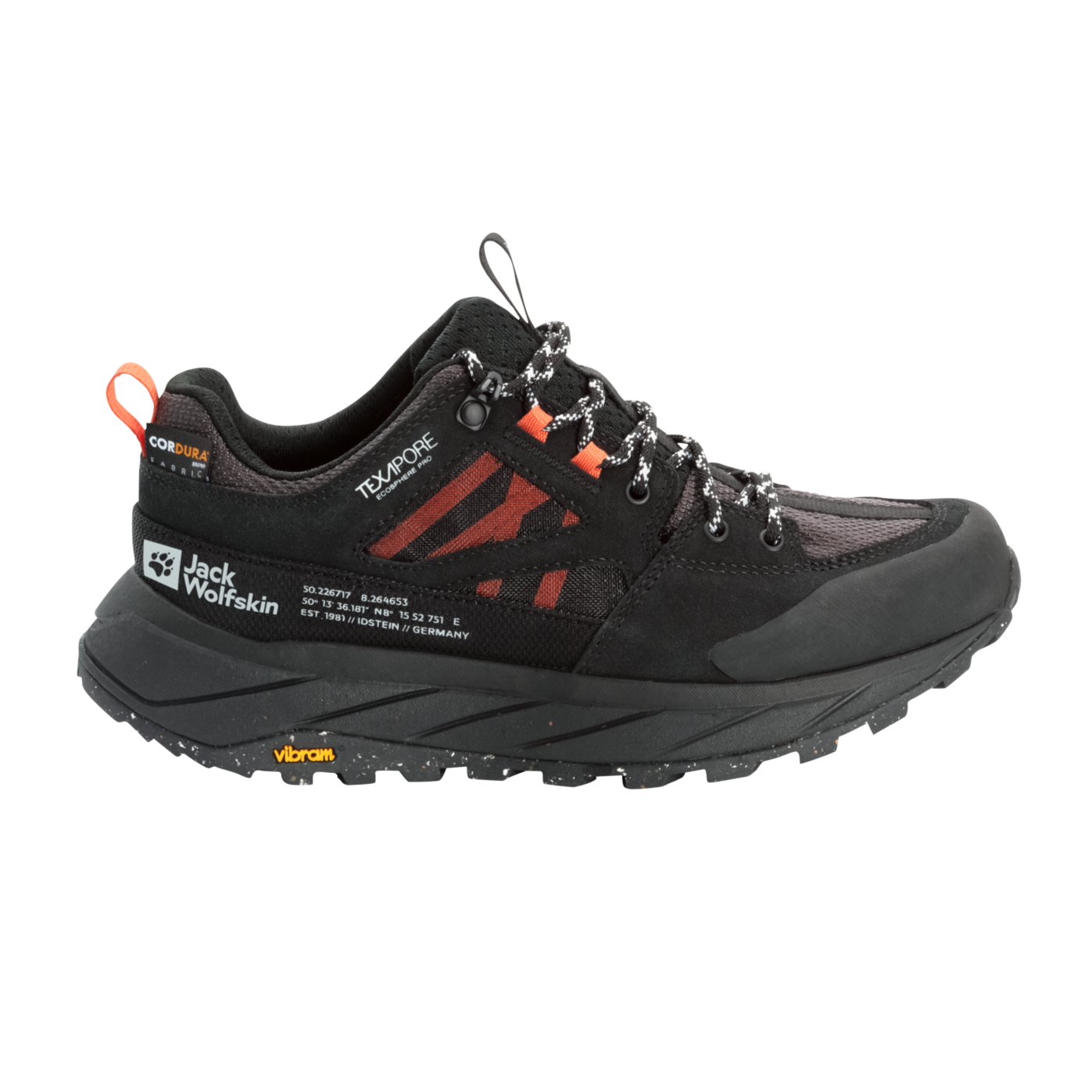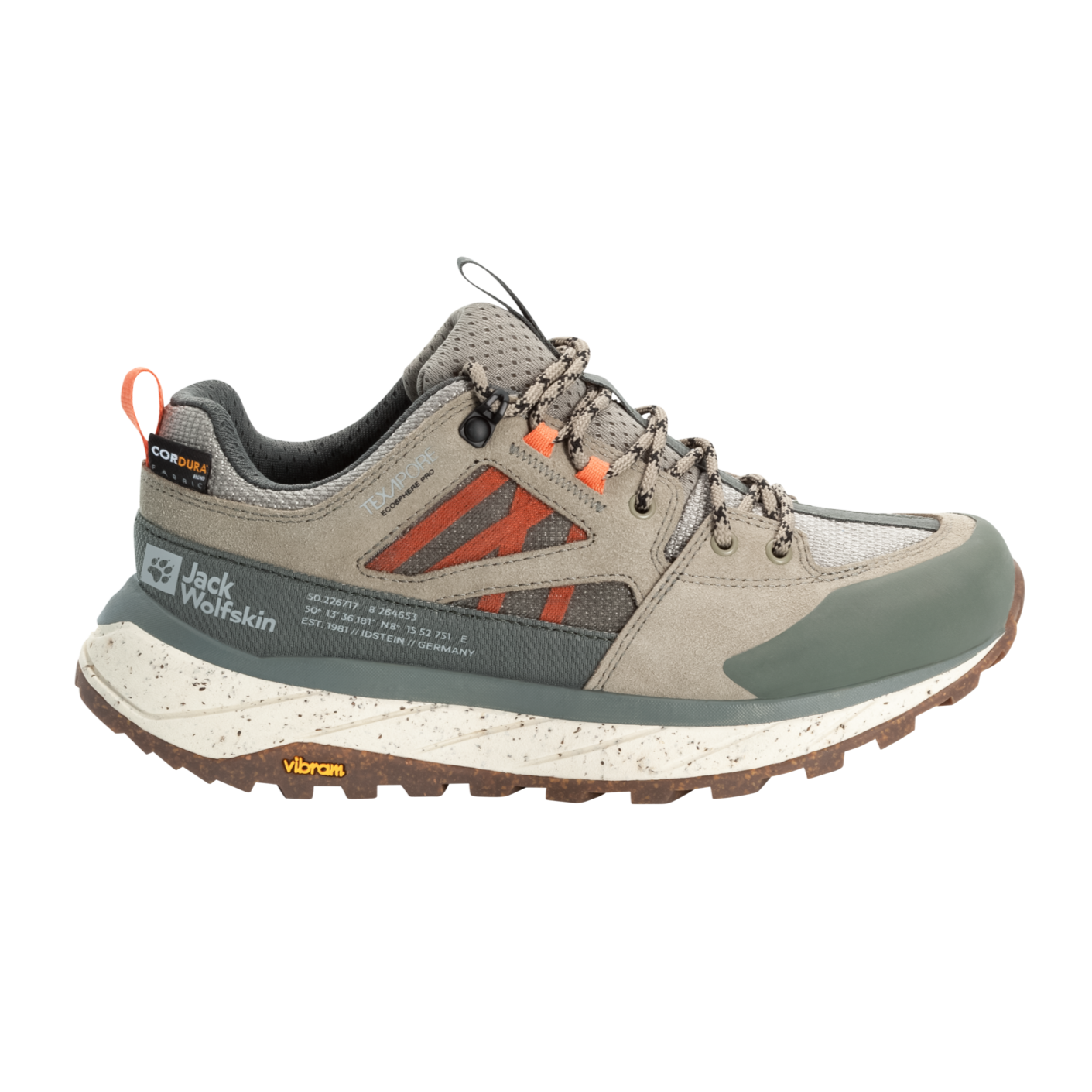 For adventures off the beaten path, you need a hiking shoe you can rely on. Jack Wolfskin's TERRAQUEST TEXAPORE LOW was specially designed to meet such requirements. The shoe has a waterproof and breathable TEXAPORE ECOSPHERE PRO membrane to help keep your feet dry when you’re rock hopping across streams.