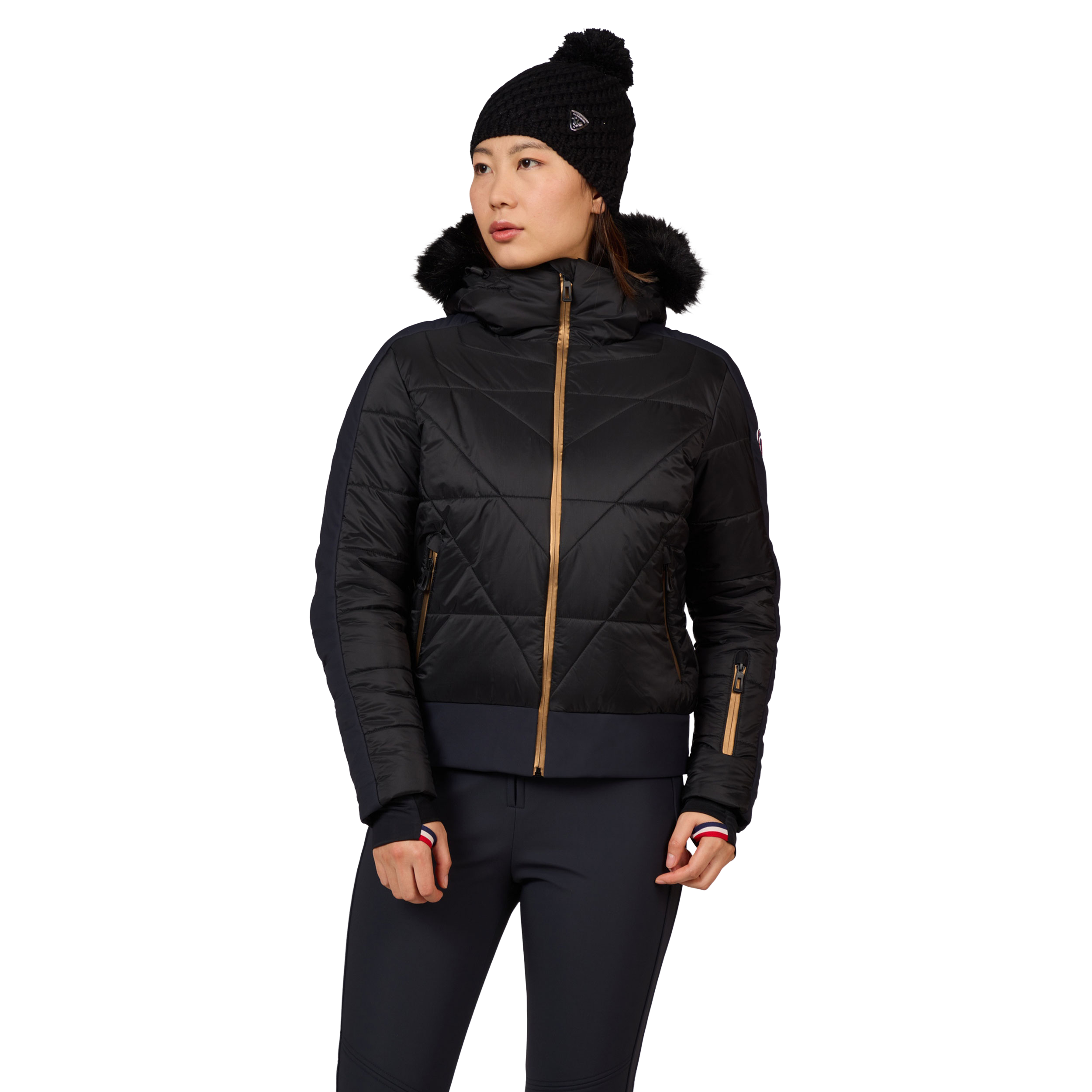A functional wrist gaiter, designed to provide additional warmth and prevent snow from entering through the sleeves. Adding a touch of heritage, the gaiter is accented with Rossignol’s emblematic colors—blue, white, and red—reflecting the brand's legacy and commitment to quality. This thoughtful detail not only enhances comfort and performance on the slopes but also connects the wearer to Rossignol's rich alpine tradition, making it a stylish and practical choice for winter sports enthusiasts.